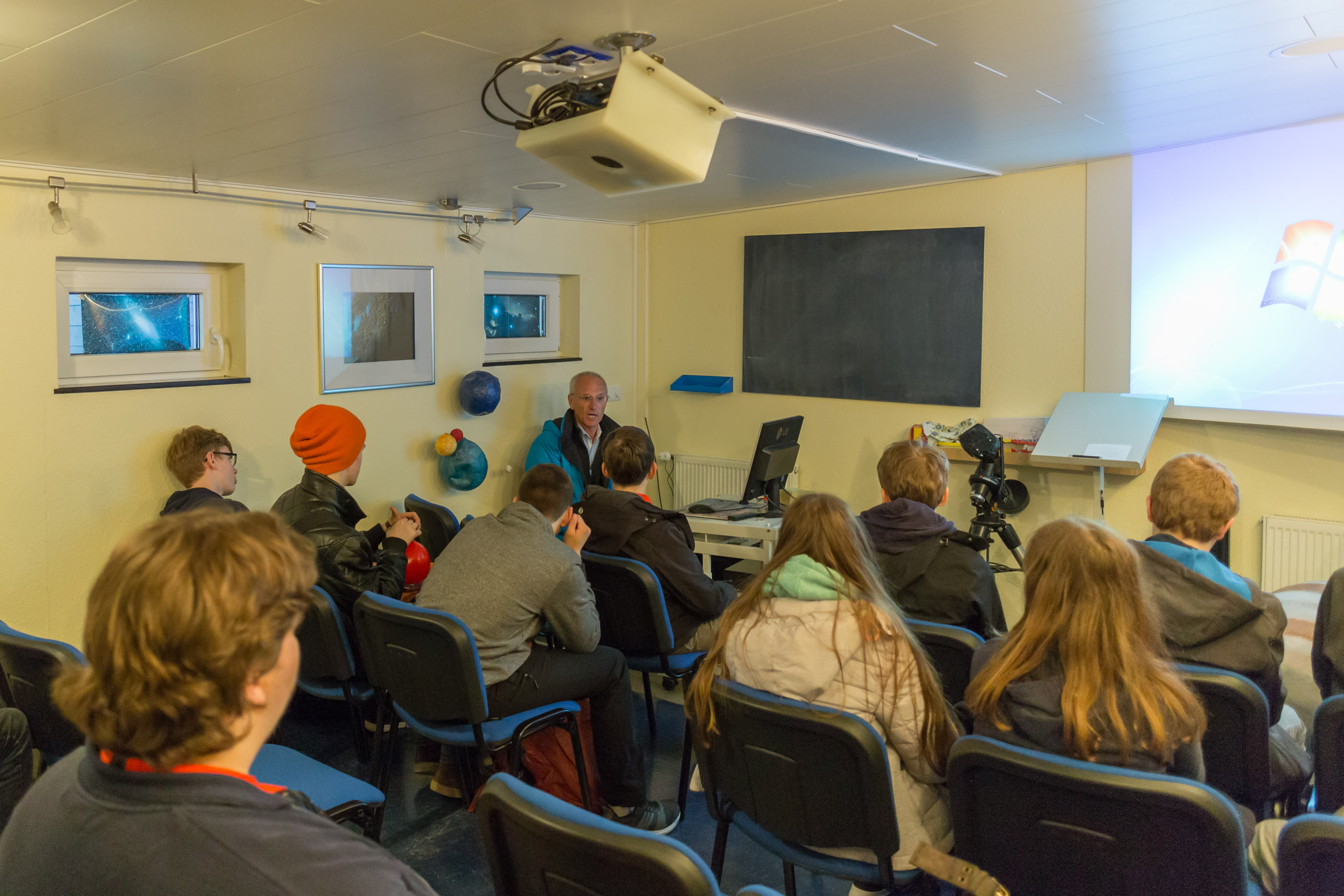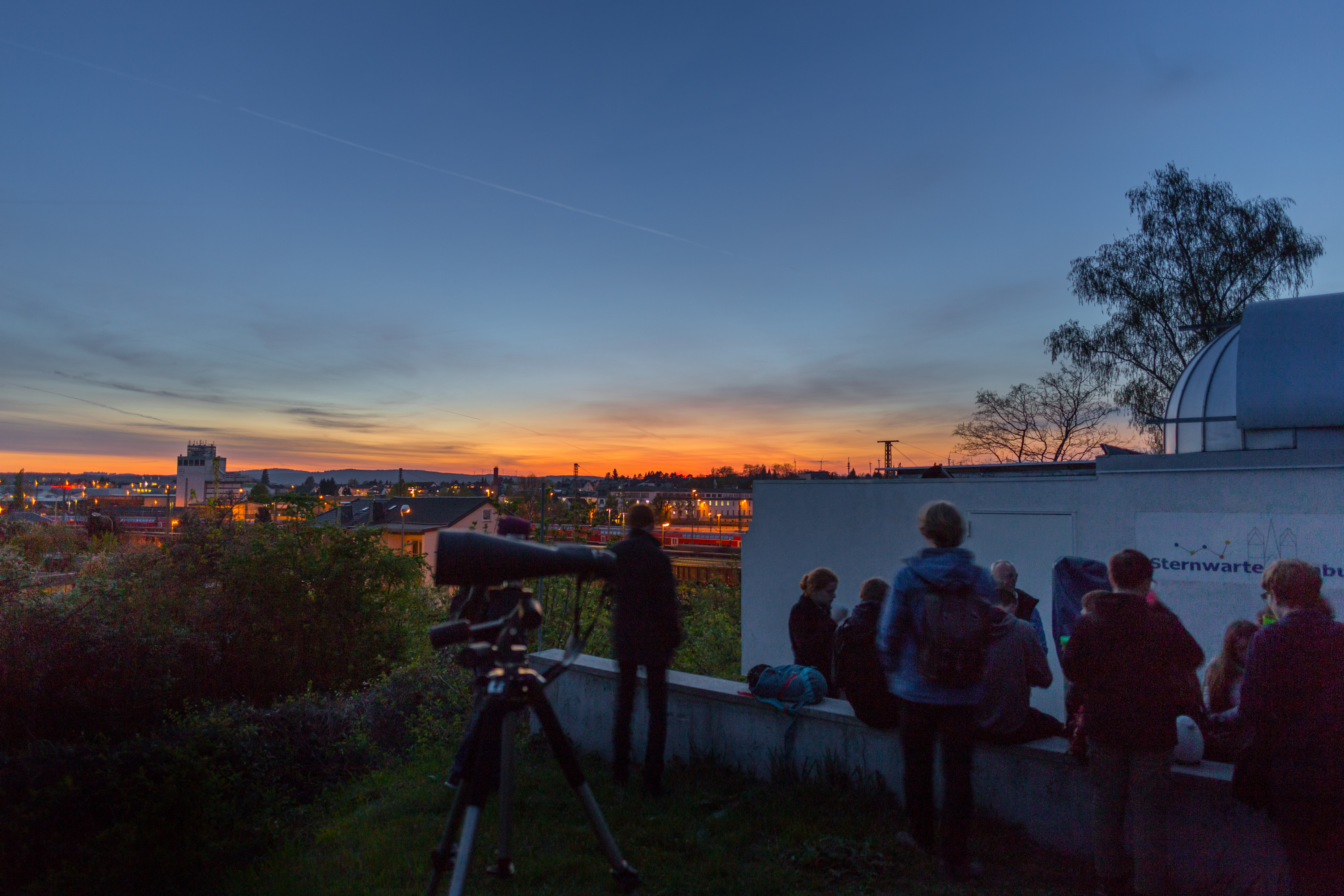 Am Dienstag den 11.4.2017 wurde die Sternwarte von einer Untergruppe des Vereins MinD juniors der Hochbegabtenförderung besucht. Es handelte sich um ein Camp in der hiesigen Jugendherberge von etwa 90 Teilnehmern die aus allen Teilen der Bundesrepublik kamen und in Limburg ihre Ferien für diverse Bildungsangebote nutzten. 15 Jugendliche von etwa 11-15 Jahren interessierten sich für astronomische Fragestellungen und brachten teils schon ein erstaunliches Vorwissen mit. Sie wurden von 3 Betreuern begleitet. Für die Moderatoren Marcel Herheuser und Dr. Peter Haas war es auffällig mit welcher Konzentration und Blick auf das Wesentliche alle bei der Sache waren. Nach Begrüßung und Besichtigung der Örtlichkeiten und der Fernrohre wurden bei einigermaßen klarem Himmel und Vollmond folgende Sachverhalte besprochen:Himmelsmechanik, Orientierung am Himmel, Sternbilder und allgemeine Fragen zur Kosmologie. Das Werden und Sterben der Sterne konnten anhand des Orion Nebels und der Orionsterne gezeigt werden. Außerdem war Jupiter und seine Monde gut zu sehen. Vertieft wurde alles noch einmal anhand des Planetariumprogramms „Stellarium“. Es war für alle ein anregender Abend und auch die Moderatoren hatten eine gute Gelegenheit ihr Wissen und ihr Problembewusstsein zu verbessern. Am Ende der Veranstaltung fanden die schönen Astrofotos unserer Vereinsfotografen großen Anklang und wurden zahlreich erworben.