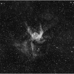 Die Aufnahme von Peter Remmel wurde mit einem Spiegelteleskop mit 350 mm Öffnung gemacht. Verwendet wurde eine gekühlte Astrokamera mit der dieser Nebel insgesamt 50 x 60s belichtet wurde.