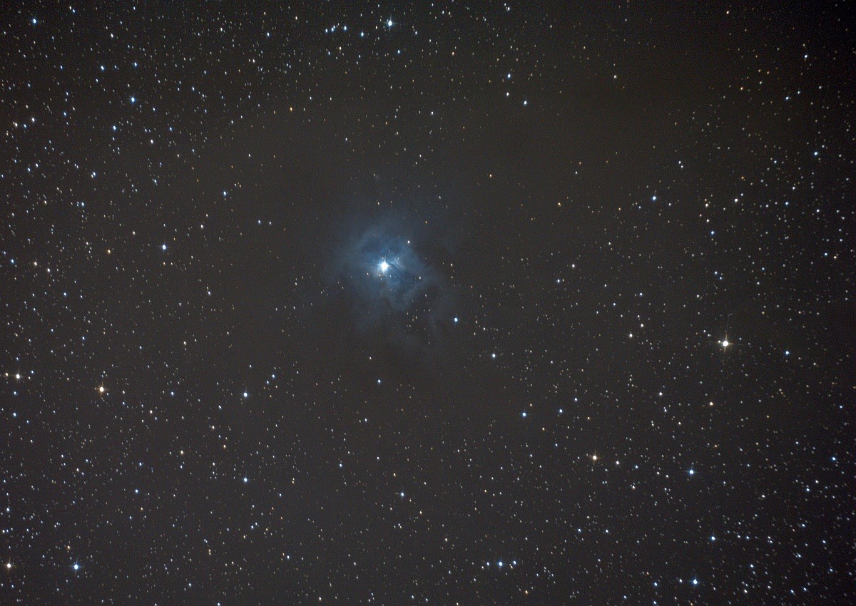 Einige astrofotografisch interessierte Mitglieder der Limburger Sternwarte beschäftigten sich kürzlich mit dem sogenannten IRIS-NEBEL (NGC7023) mit unterschiedlichem Instrumentarium und unterschiedlicher Bearbeitung. Es handelt sich um einen auffallend blauen Nebel, der durch das Anstrahlen des Sternes in der Mitte seine intensive Färbung erhält. Die Dunkelwolke drumherum ist gewissermaßen die Wiege der ganzen Sternengruppe in der Umgebung des blauen Feldes.