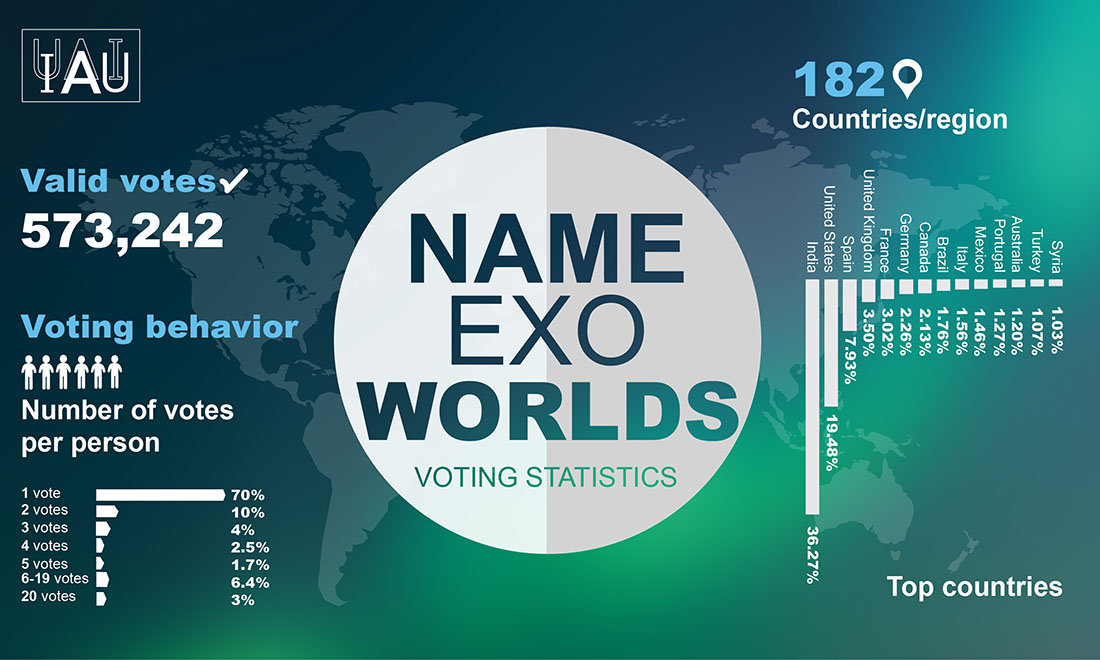 PrintName EXO Worlds war eine Aktion des IAU (International Astronomical Union). Hier ging darum, dass Privatpersonen und astronomische Einrichtungen für 31 bekannte Exoplaneten mit ihren 14 „Muttersternen“  Eigennamen finden sollen.