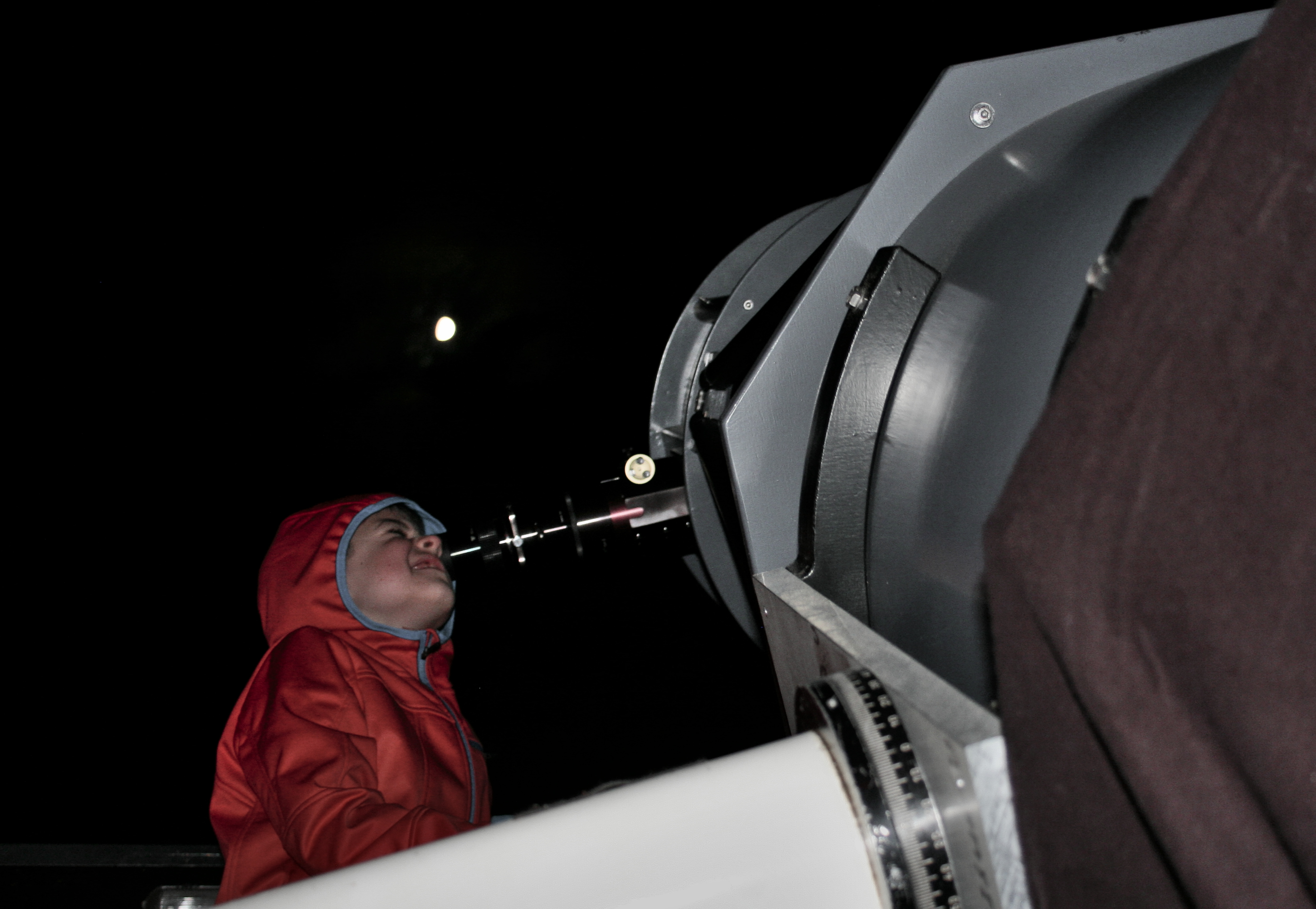 Im Anschluss an den Vortrag hatte jeder Besucher die Möglichkeit durch die Vereins-Teleskope einen Blick auf den Mond zu werfen und Fragen rund um das Thema Astronomie zu stellen. Für einige Gäste war dies die erste Teleskopbeobachtung. „toller Anblick!“ – sagte ein begeisterter 9 jähriger Junge.