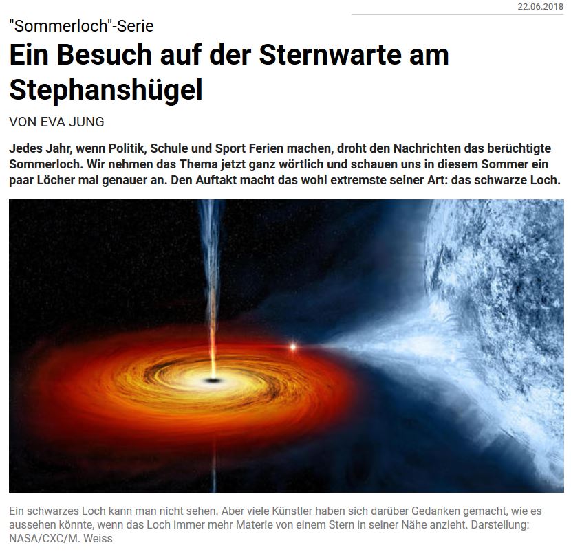 Im Rahmen der Serie „Löcher gesucht“ startete die NNP mit einem Artikel zum Thema „Schwarze Löcher“.