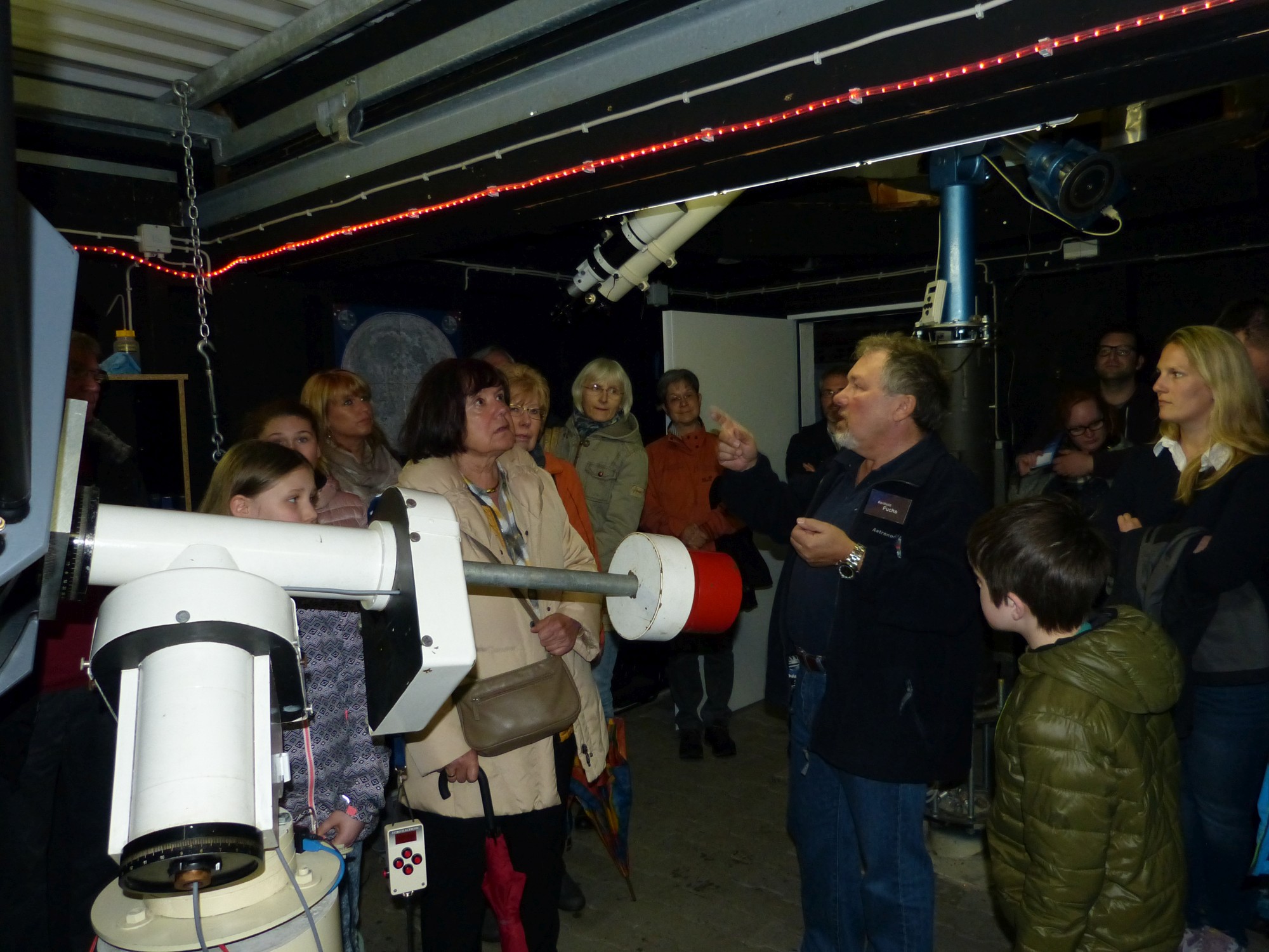 Leider gab es danach nicht die kleinste Wolkenlücke am Himmel, so dass eine Kurzbesichtigung des Instrumentenparks unserer Sternwarte, statt der Beobachtung von Mond oder Jupiter, zum Abschluss ausreichen musste.