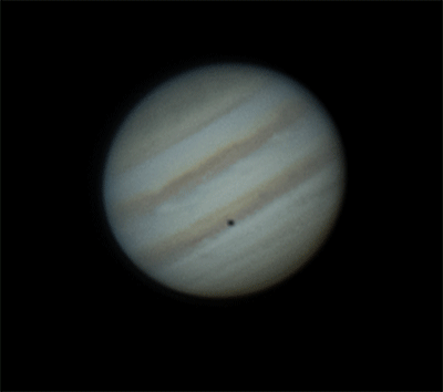 Dieser Schatten ist auf der Jupiteroberfläche als scharf begrenzter schwarzer Fleck sichtbar. Im Bild hier ist er noch zu sehen obwohl Io nicht mehr vor der Oberfläche steht.