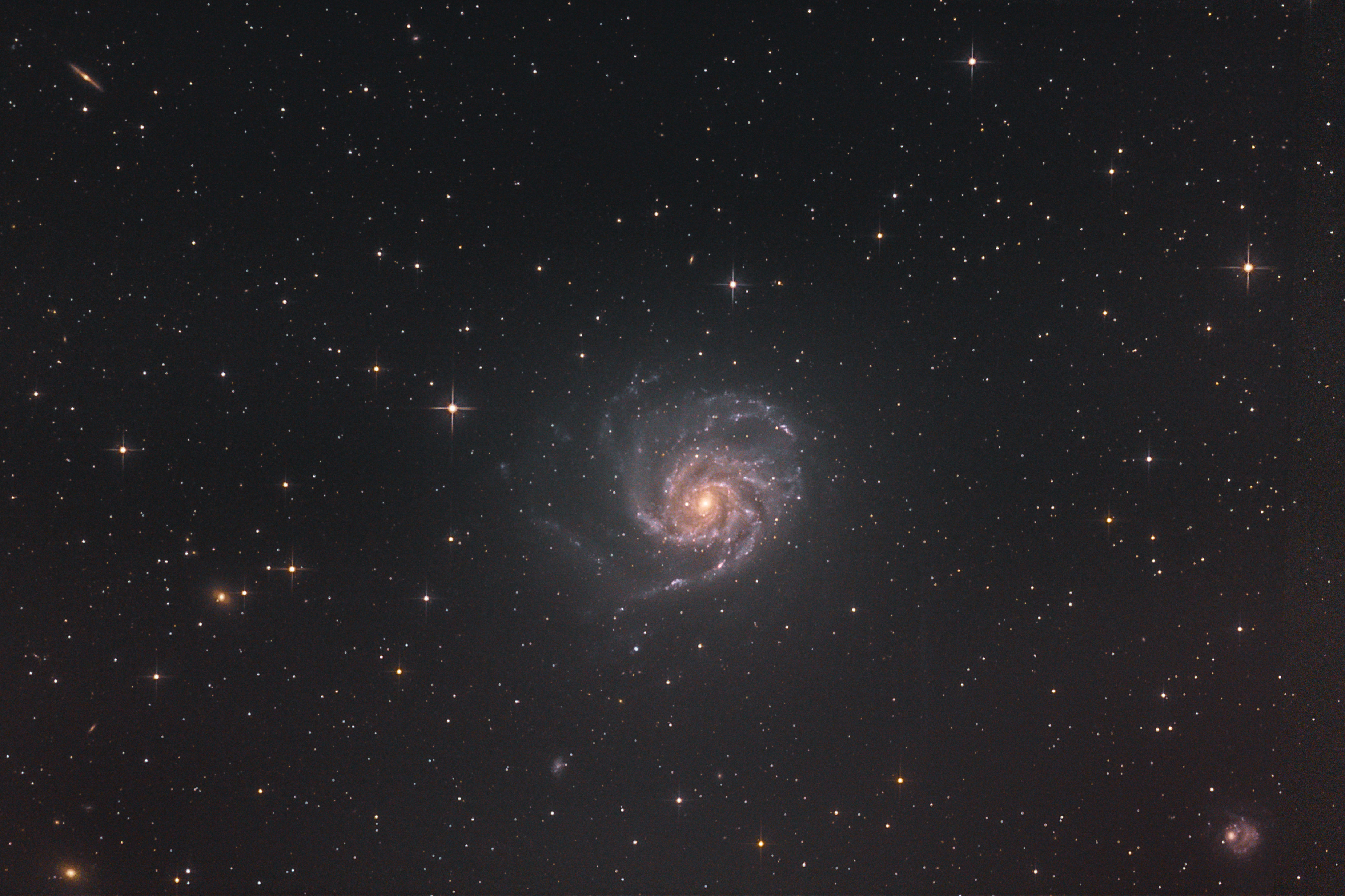 Das Bild des Monats zeigt das Messier-Objekt mit der Katalognummer M101 welches bei Astronomen auch unter dem Namen „Feuerrad-Galaxie“  bekannt ist. Es handelt sich dabei um eine Spiralgalaxie im prominenten Sternbild „Großer Bär“, welches Landläufig als „Großer Wagen“ bezeichnet wird. M101 ist mit einem Durchmesser von ca. 180.000 Lichtjahren etwas größer als unsere Milchstraße. Das Licht, welches M101 zu uns sendet, benötigte 22 Millionen Jahre bis es  auf den Sensor meiner Kamera gefallen ist. Weiterlesen