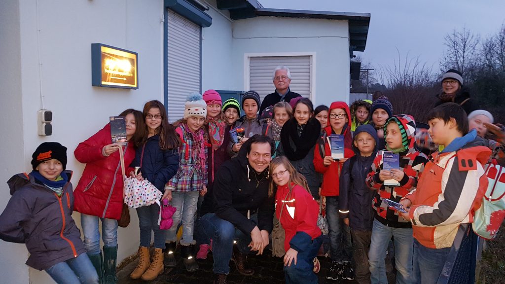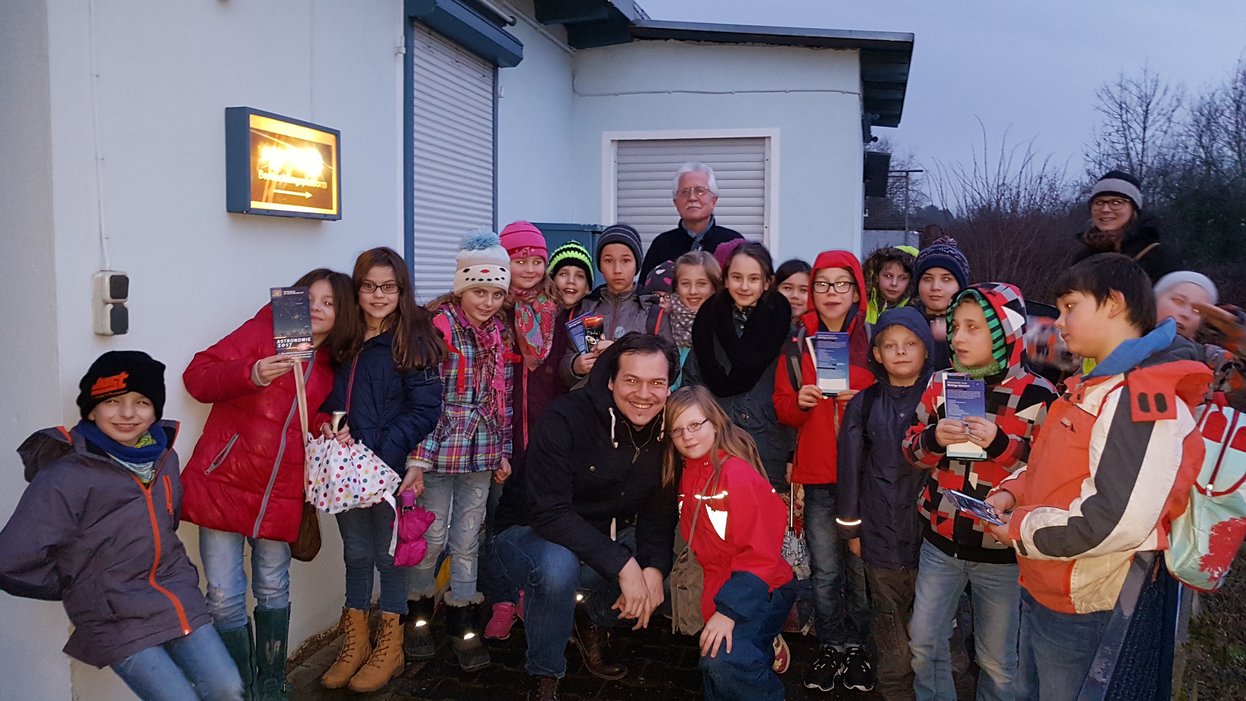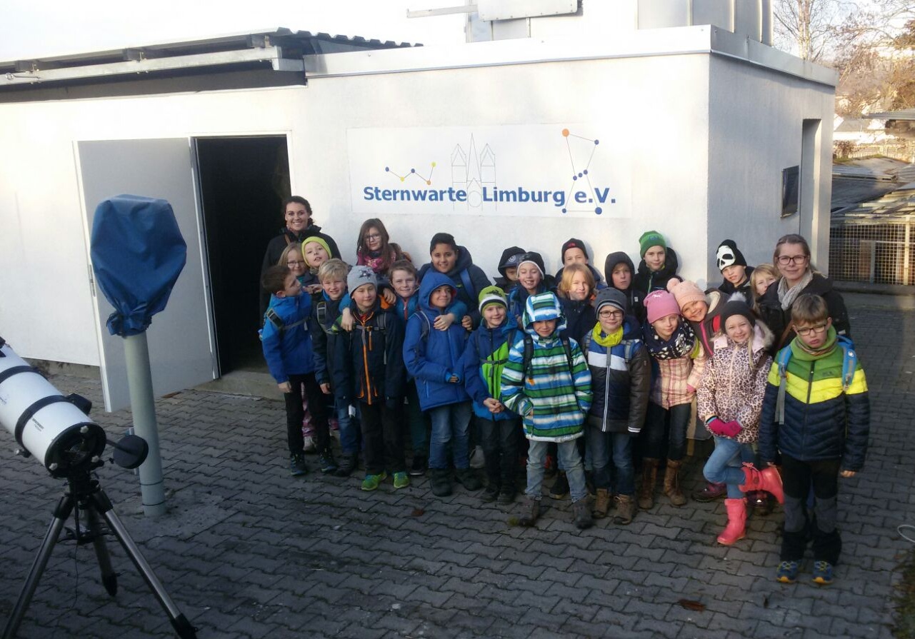 20 thematisch sehr gut vorbereitete und aufgeweckte Schüler/innen der 3ten Klasse der Emsbachtalschule in Brechen besuchten zusammen mit ihren beiden Lehrern, Frau Hofmann und Herrn Bosch, am 16.02.2017 die Sternwarte Limburg.