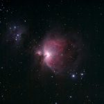 Der Orionnebel ist ein Emissionsnebel im Sternbild Orion. Er ist ca. 1350 Lichtjahre von der Erde entfernt und hat einen Durchmesser von rund 30 Lichtjahren. Der Nebel besteht in erster Linie aus Wasserstoff. In diesen Wasserstoffwolken entstehen neue Sterne, die mit ihrer Strahlkraft den Nebel zum Leuchten bringen. Er ist sogar mit bloßem Auge sichtbar.