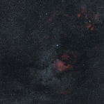 Dieses Bild entstand am 22. März nachts zwischen 3 und 5h30, Blickrichtung Sternbild Schwan ( Az 62°/ DEC 37°). Deneb wurde ins Zentrum dieses Wide Sky Bildes gestellt. Für unseren Standort in dieser Jahreszeit eine Gegend mit einer sehr hohen Sterndichte. Eine echte Herausforderung in Sachen optischer Auflösevermögen in der Fläche, also von den Ecken bis ins Zentrum. Die Spreizung der Helligkeiten ist enorm, Deneb zählt zu den 20 hellsten Sternen an unserem Nachthimmel mit ca 1,2 mag.